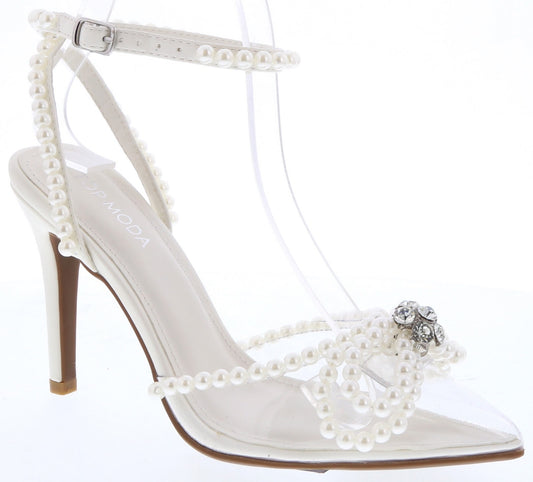 Perla Embellished Ankle Wrap Pumps - White